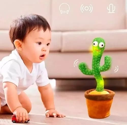 El juguete más buscado del momento llegó con nuevos diseños y más diversión. Este simpático cactus no solo baila y canta, ¡también repite tus palabras con una voz súper divertida! Ideal para estimular el lenguaje y hacer reír a grandes y chicos