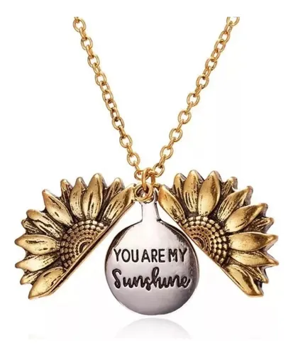 Delicada por fuera, poderosa por dentro. Esta cadena girasol se abre para revelar “you are my sunshine” “eres mi sol”
